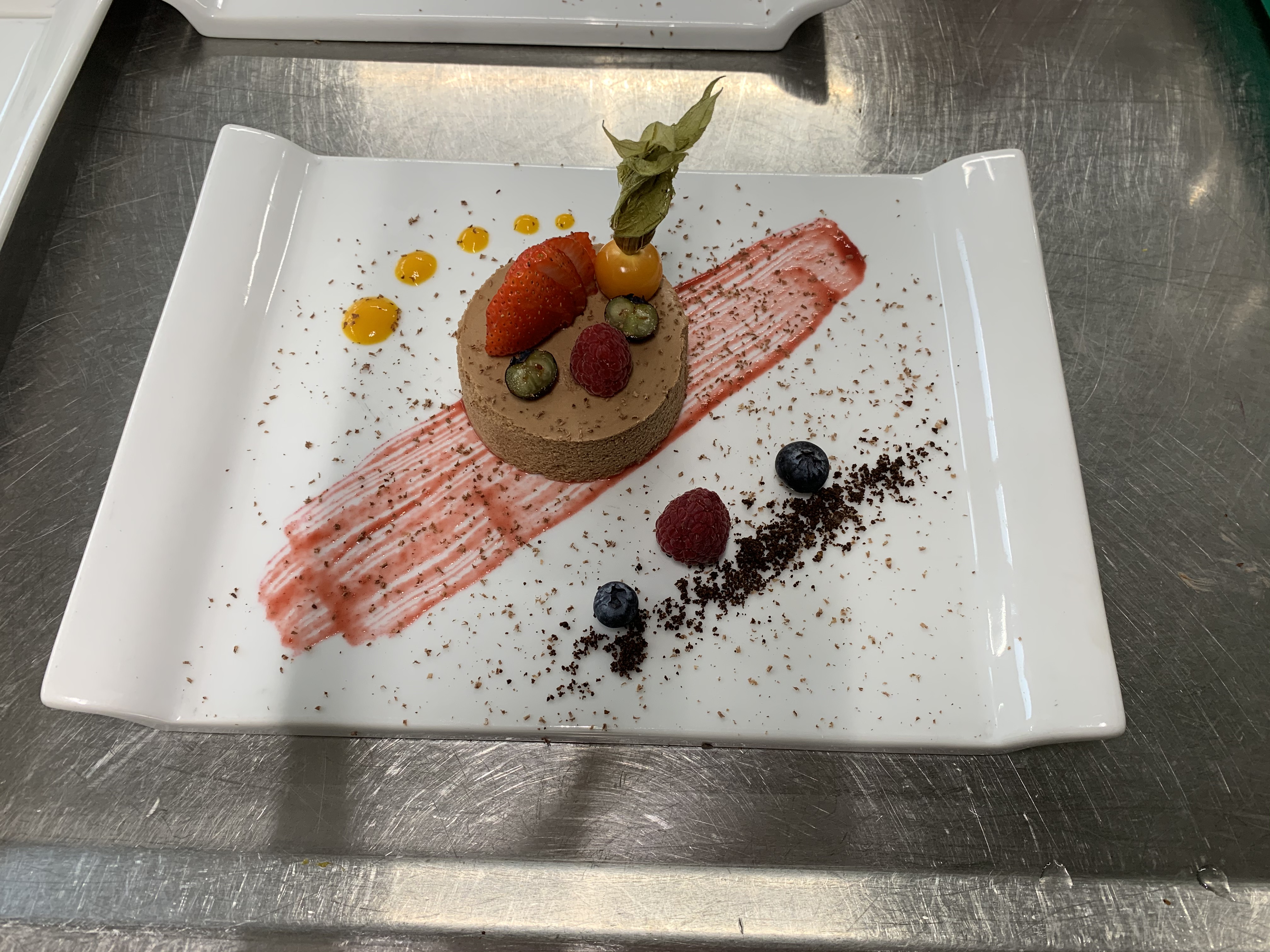 Eine feine Panna Cotta mit Moscatel aus Mallorca, serviert mit einer Erdbeer-