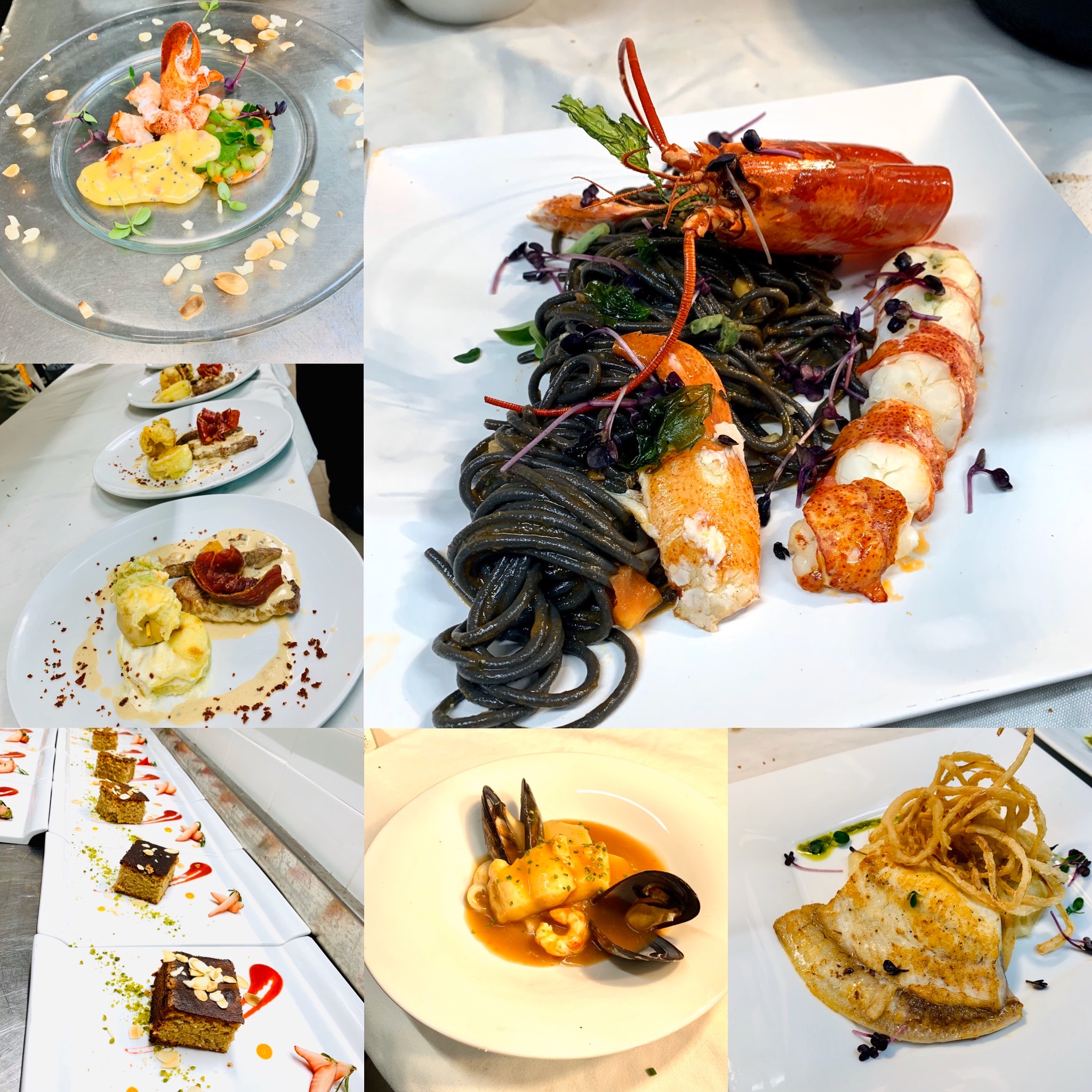 Black ink pasta sautéed with langoustine prawns and cuttlefish, accompanied by
