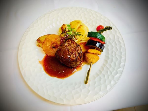caramelizar su exterior, acompañado de una salsa de reducción de carne al
